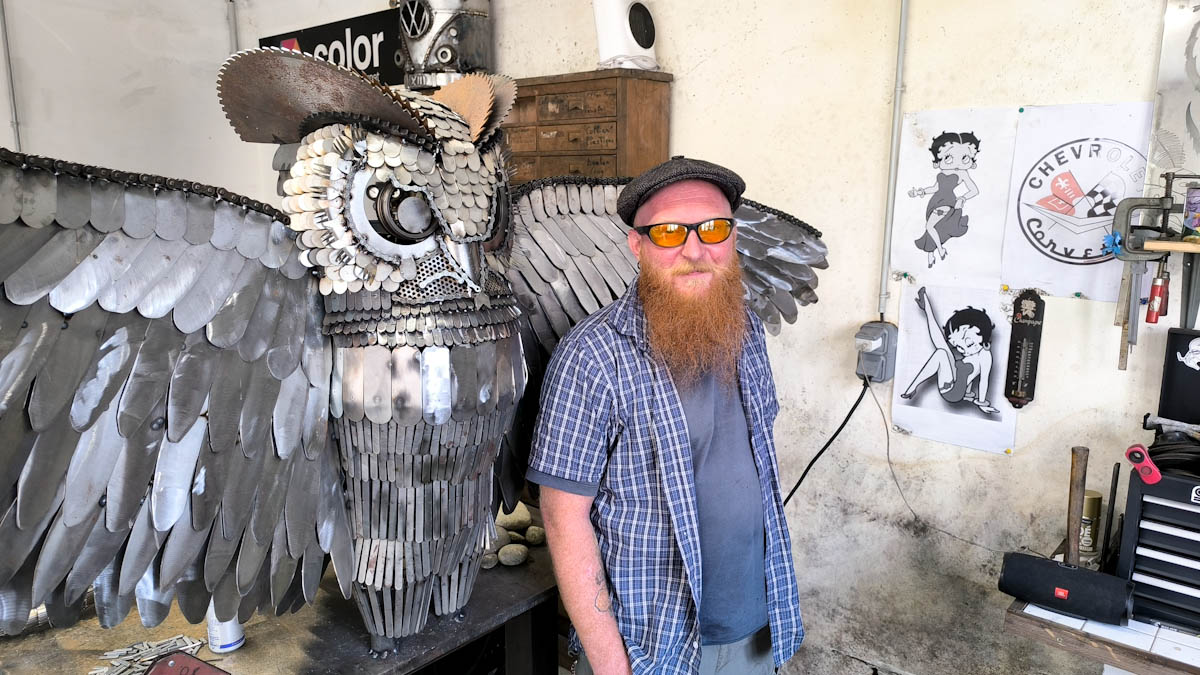 Dans un atelier à l’écart de l’agitation, Yoann Serrano façonne l’acier et l’inox avec une exigence héritée de son métier. Car avant d’être artiste, il est soudeur dans l’aéronautique, une activité qu’il découvre il y a une dizaine d’années après avoir quitté le secteur de la restauration. Une reconversion décisive, qui révèle chez lui un véritable sens de la création.